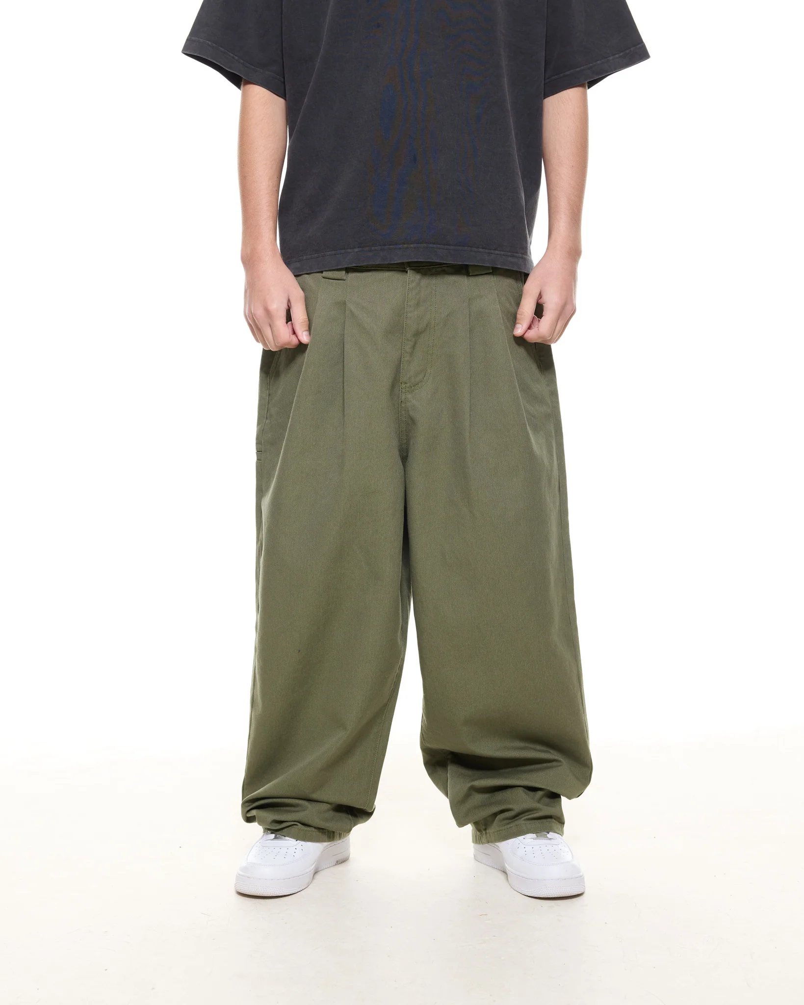 - Oversized, wide leg fit